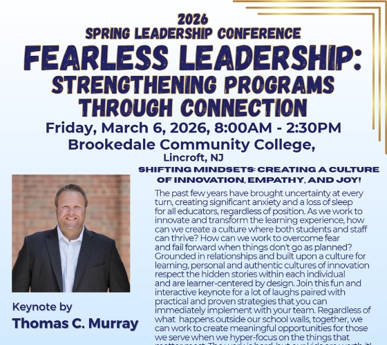 Call for Sponsors: Join us in supporting the 2026 Spring Leadership Conference by becoming a sponsor! This is a unique opportunity to connect with educational leaders, innovators, and decision-makers from across the state of NJ. As a sponsor, you’ll gain visibility and showcase your commitment to advancing education and empowering fearless leadership. Your support will play a crucial role in enhancing our programs and creating impactful experiences for all attendees.